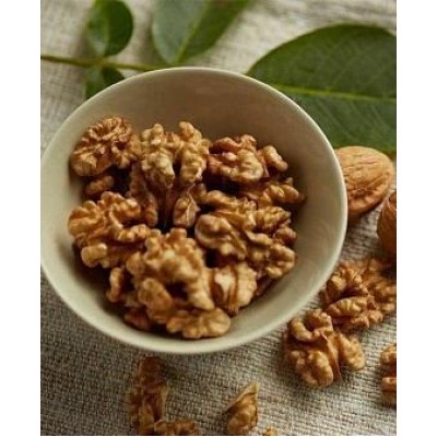 Скорлупа средне-тонкая, темно - кремового оттенка, отделить которую не составит труда, не повредив ядро. Съедобное ядро извилистое, крупное, очень вкусное, цвет ядра кремовых оттенков, присутствует ярко выраженный аромат. Первые плоды саженцы начинают приносить на 5-7 год после посадки.
