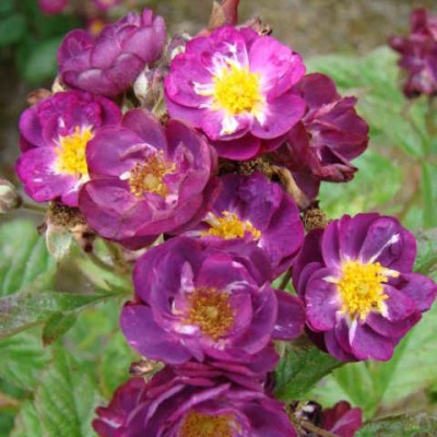 Цветение розы "Вайолет Худ" обильное и может повторяться несколько раз в течение сезона, вплоть до заморозков. Осенью на месте цветков появляются маленькие красные плоды шиповника, что делает этот сорт поистине экологичным.